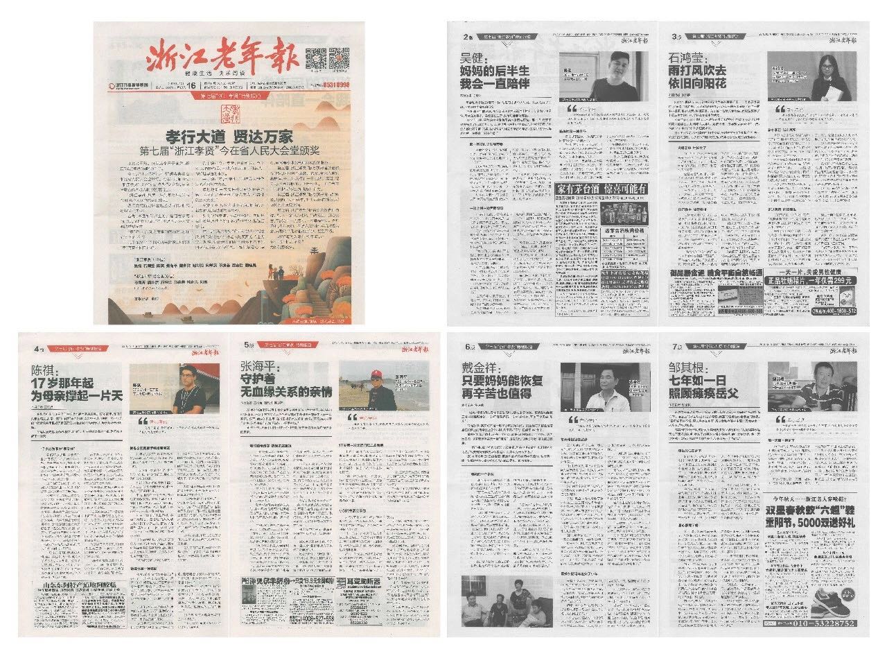浙江老年報(bào)在10月16日第1723期報(bào)紙上刊登了孝行大道特別報(bào)道,因版面內(nèi)容較多,故向大家展示浙江老年報(bào)首頁(yè)內(nèi)容,文章如下: