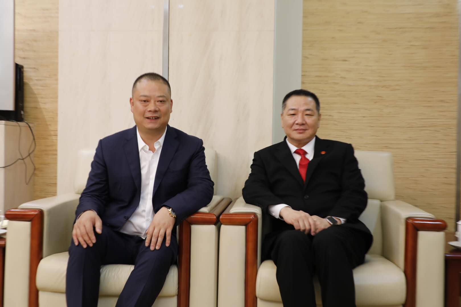 浙江省工商聯(lián)主席、浙江省商會會長、富通集團董事局主席王建沂與朗佑控股董事長何勇合影留念
