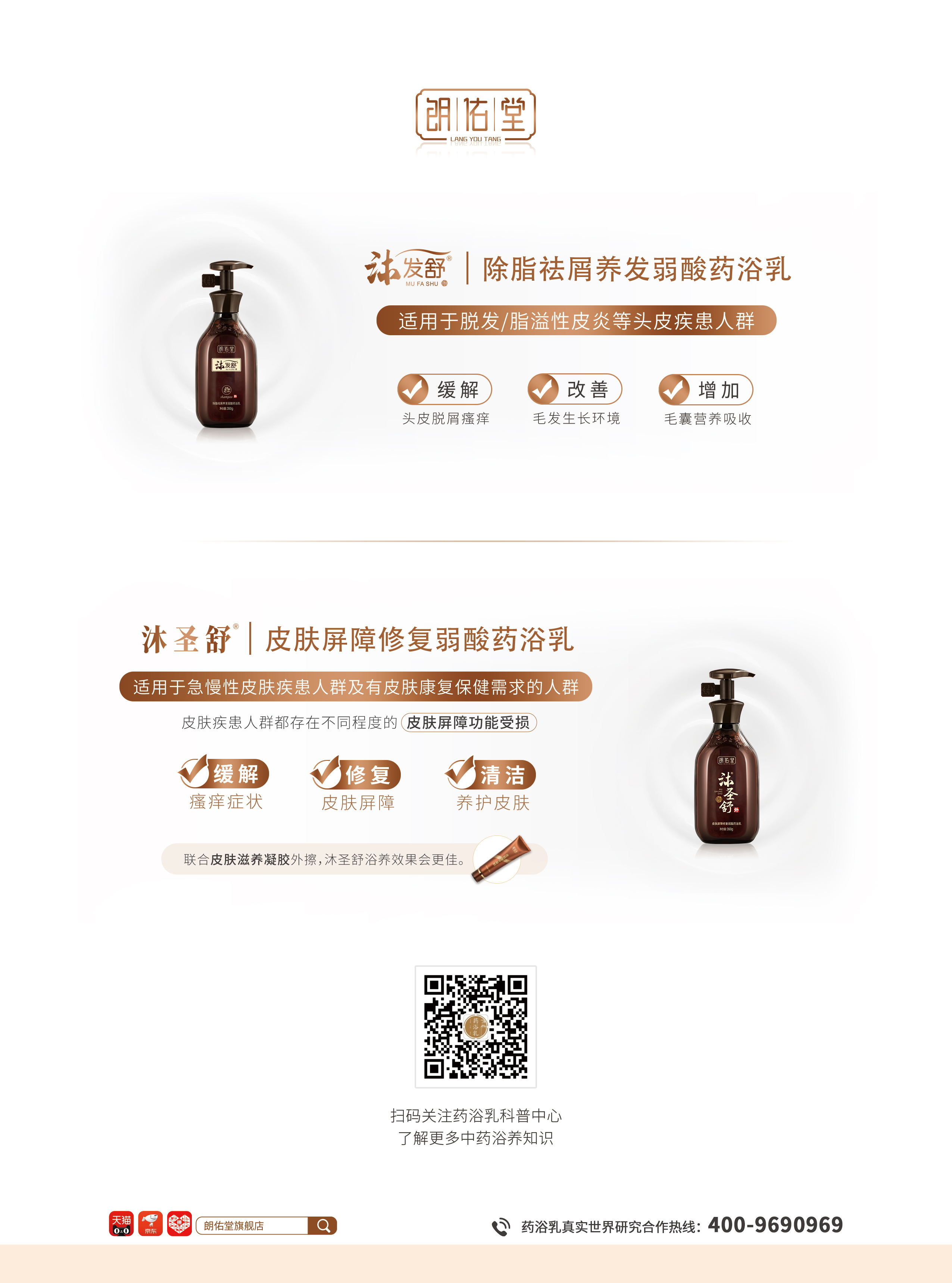 朗佑堂研制的每款中藥藥浴乳都聚焦剛需人群,比如沐發(fā)舒(除脂祛屑養(yǎng)發(fā)弱酸藥浴乳)由18味植物中藥萃取的精華藥液組成,聚焦脫發(fā)人群和頭皮疾患人群的浴養(yǎng)需求,可以有效緩解頭皮脫屑瘙癢,改善毛發(fā)生長環(huán)境,增加毛囊營養(yǎng)吸收。