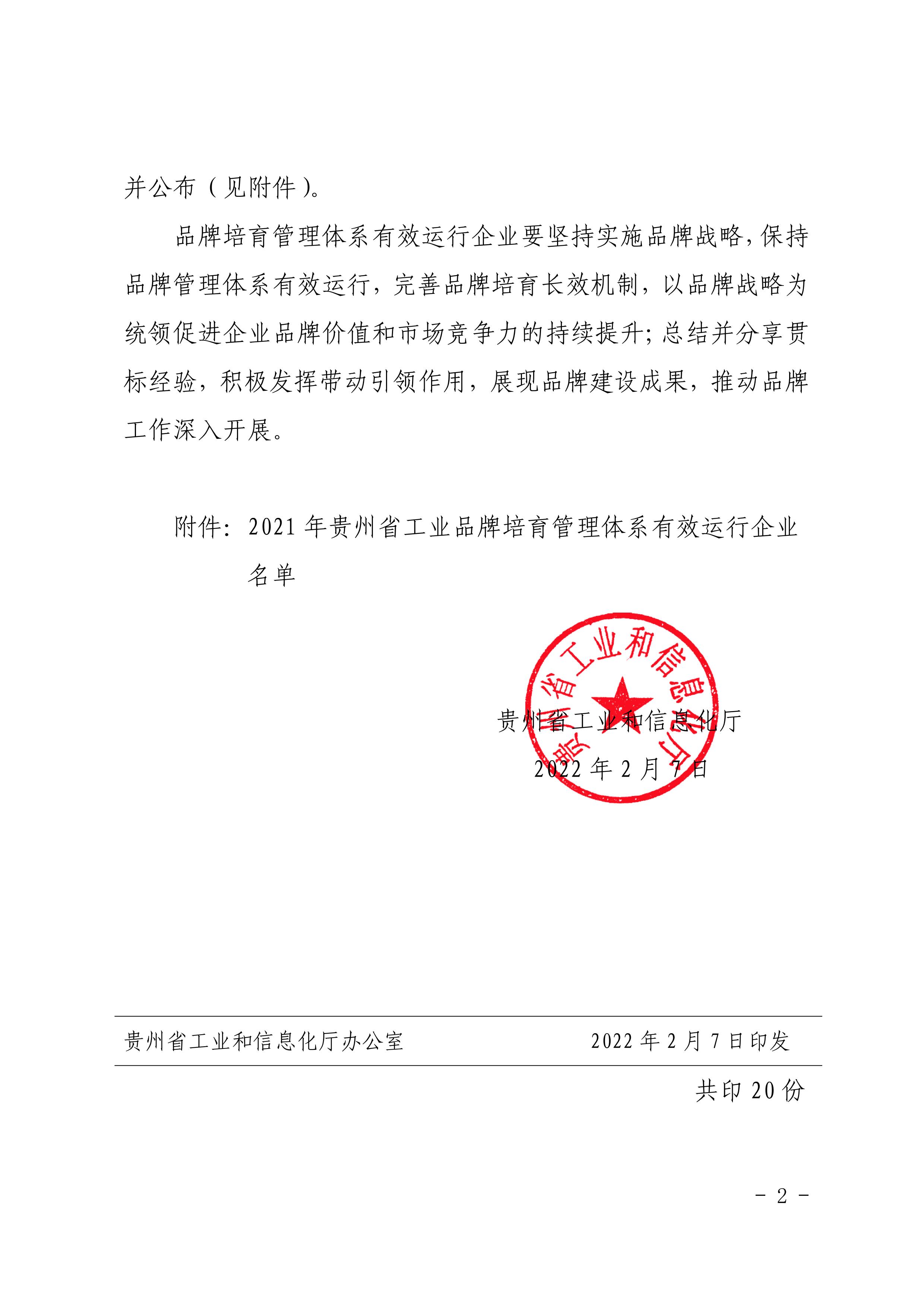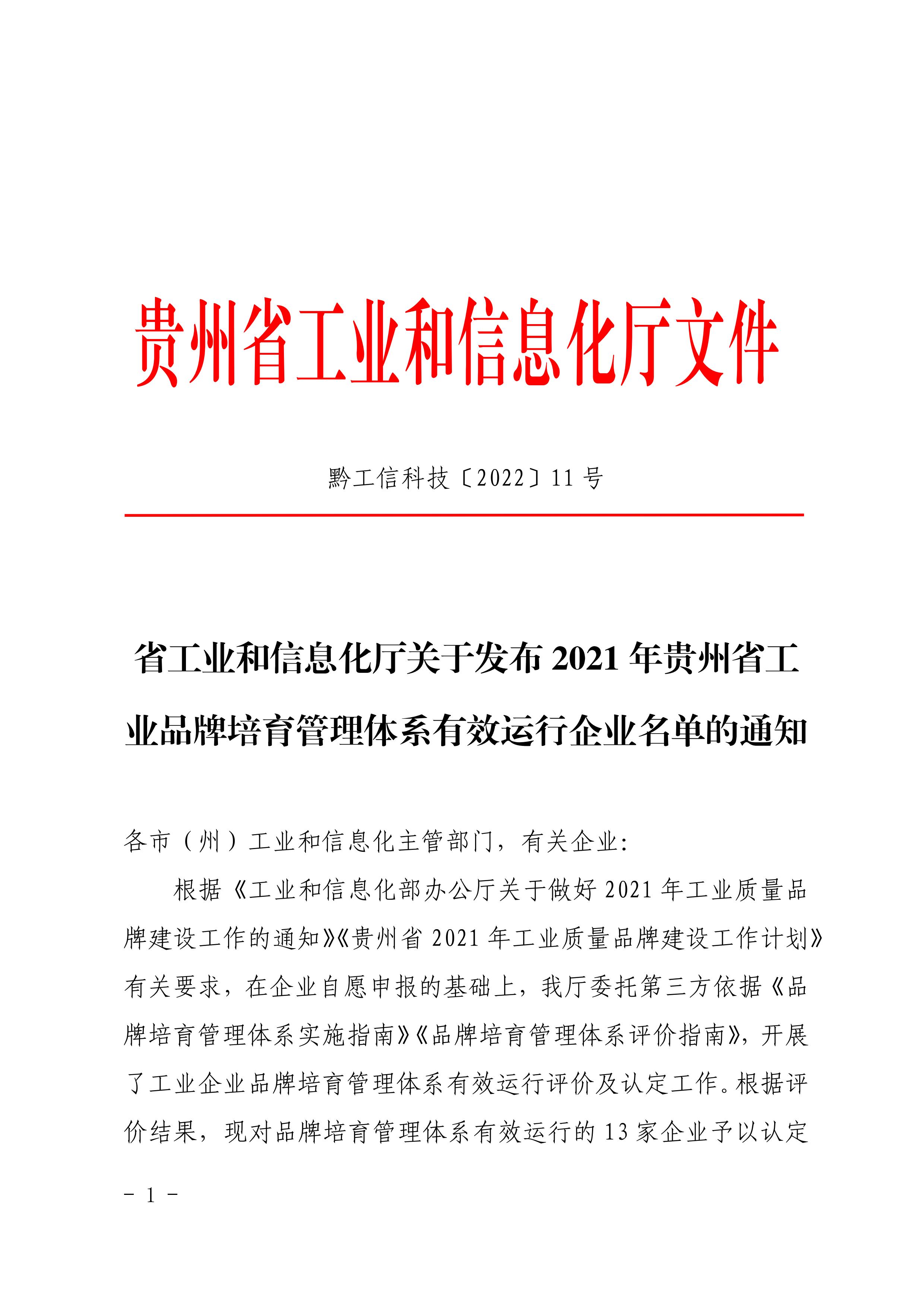 2022年2月16日,貴州朗佑堂制藥有限公司被貴州省工業(yè)和信息化廳列為2021年貴州省工業(yè)品牌培育管理體系有效運行企業(yè)。據悉,此次全省評選獲得認定的企業(yè)有13家,朗佑堂是唯一一家醫(yī)藥類企業(yè)獲此殊榮。