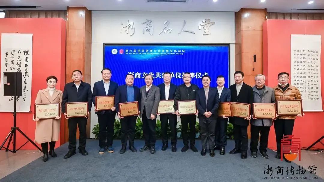 本次論壇授予了最新一批浙商文化共建單位,杭州市慈溪商會代表徐亞波、杭州市諸暨商會會長李國光、杭州市泉州商會會長王庭標(biāo)、杭州市龍游商會會長柯國宏、浙江省河北商會會長李東、浙江省重慶商會會長沈明、浙江省湖北商會輪值會長朱志鋒、浙江省四川商會會長、朗佑控股董事長、朗佑堂創(chuàng)始人何勇、杭州市天臺商會辦公室主任鮑步鰲、日本浙江總商會常務(wù)副會長周步惠等代表商會接牌。