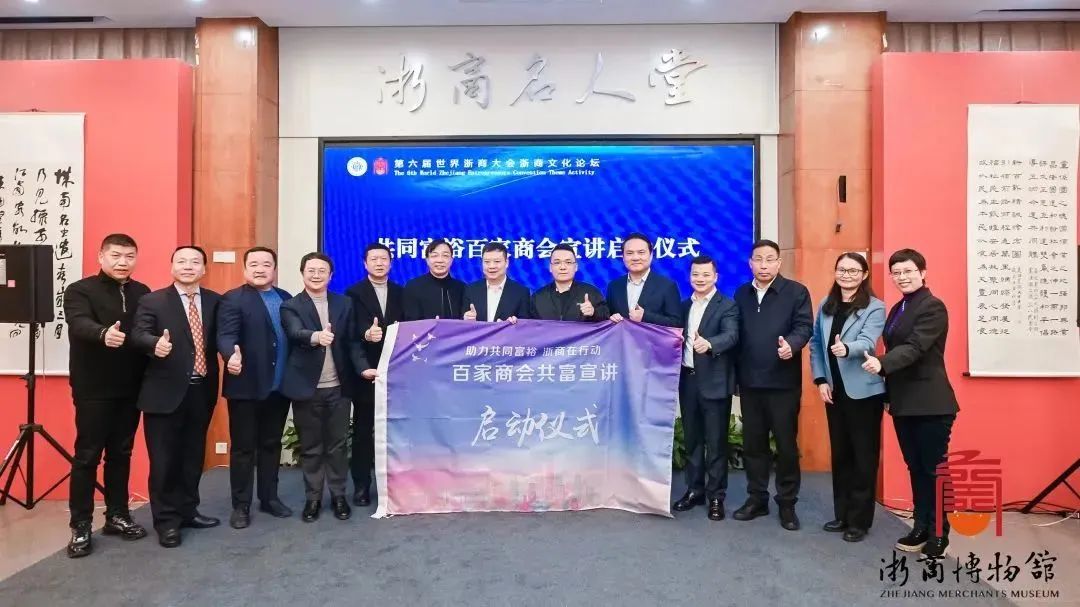 發(fā)達(dá)的民營經(jīng)濟是浙江走向共同富裕的重要動能,民營企業(yè)是初次分配和第三次分配的主體和主渠道之一。2022年1月10日,浙商博物館舉行“浙商促進(jìn)共同富裕專題展”,是浙商多年來回報社會、先富幫后富的一次盤點,也是浙江省建設(shè)共同富裕示范區(qū)啟動后浙商相關(guān)典型人物和事件的第一次專題展覽。本次論壇同時舉行了“共同富裕百家商會宣講”啟動儀式,將動員更多浙商更好地投身高質(zhì)量建設(shè)共同富裕示范區(qū)。