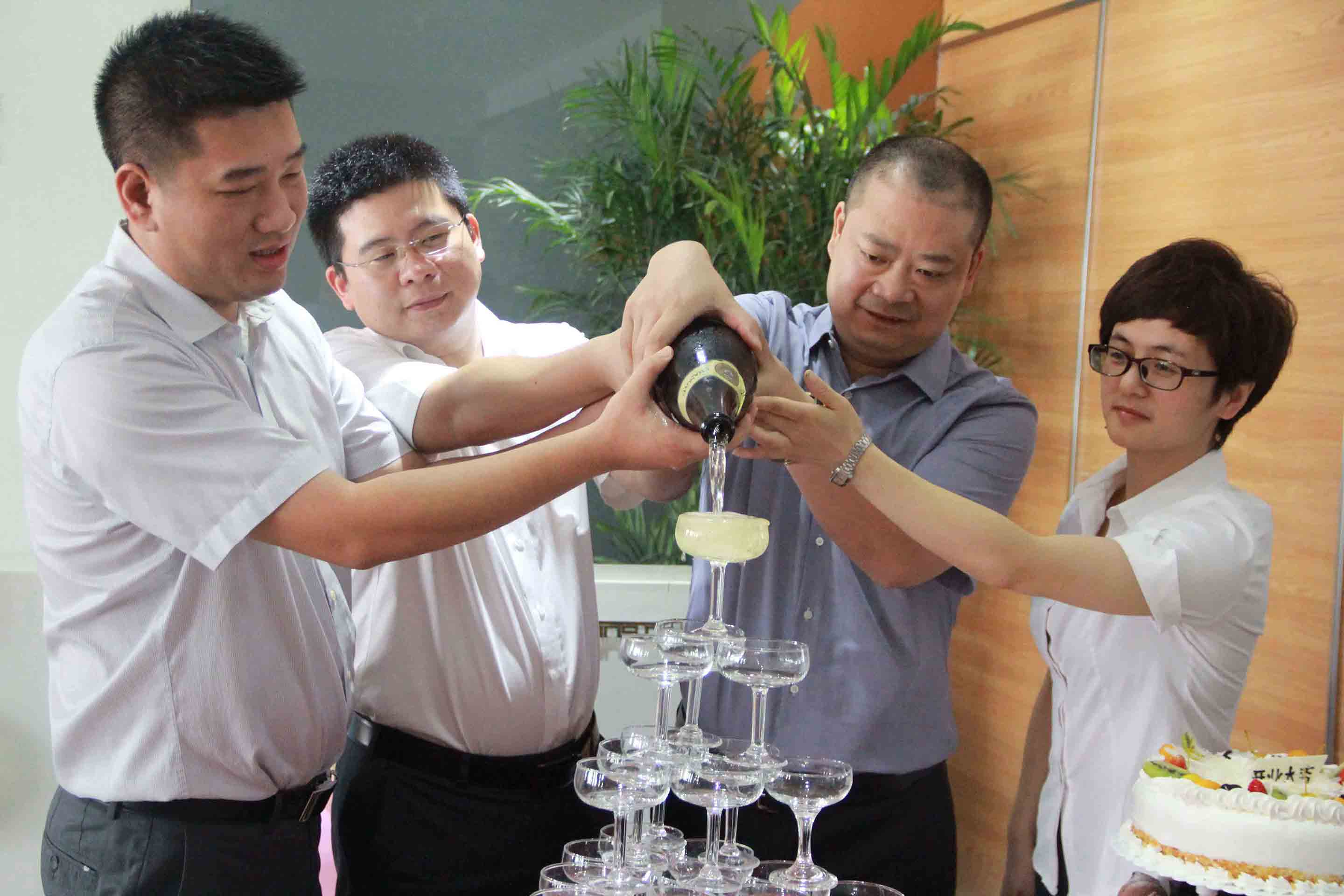 隨后,公司領(lǐng)導(dǎo)人朗佑控股董事長(zhǎng)何總、聚仕通負(fù)責(zé)人龍總、朗佑控股總經(jīng)理助理章總、朗佑質(zhì)管部總負(fù)責(zé)人徐總一同倒香檳,切蛋糕,與朗佑全體員工一起歡慶聚仕通開(kāi)業(yè)。慶祝之后,所有參與人員在聚仕通大廳進(jìn)行了合影,熱鬧的典禮也正式結(jié)束。
